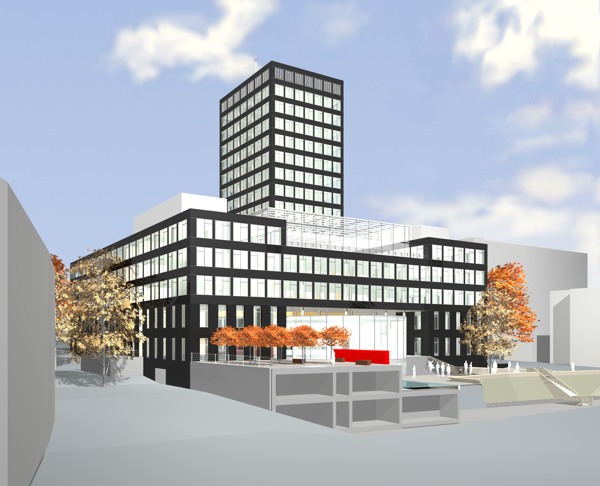 Ort in der City von Bochum. Das geplante Gebäude stellt eine Symbiose